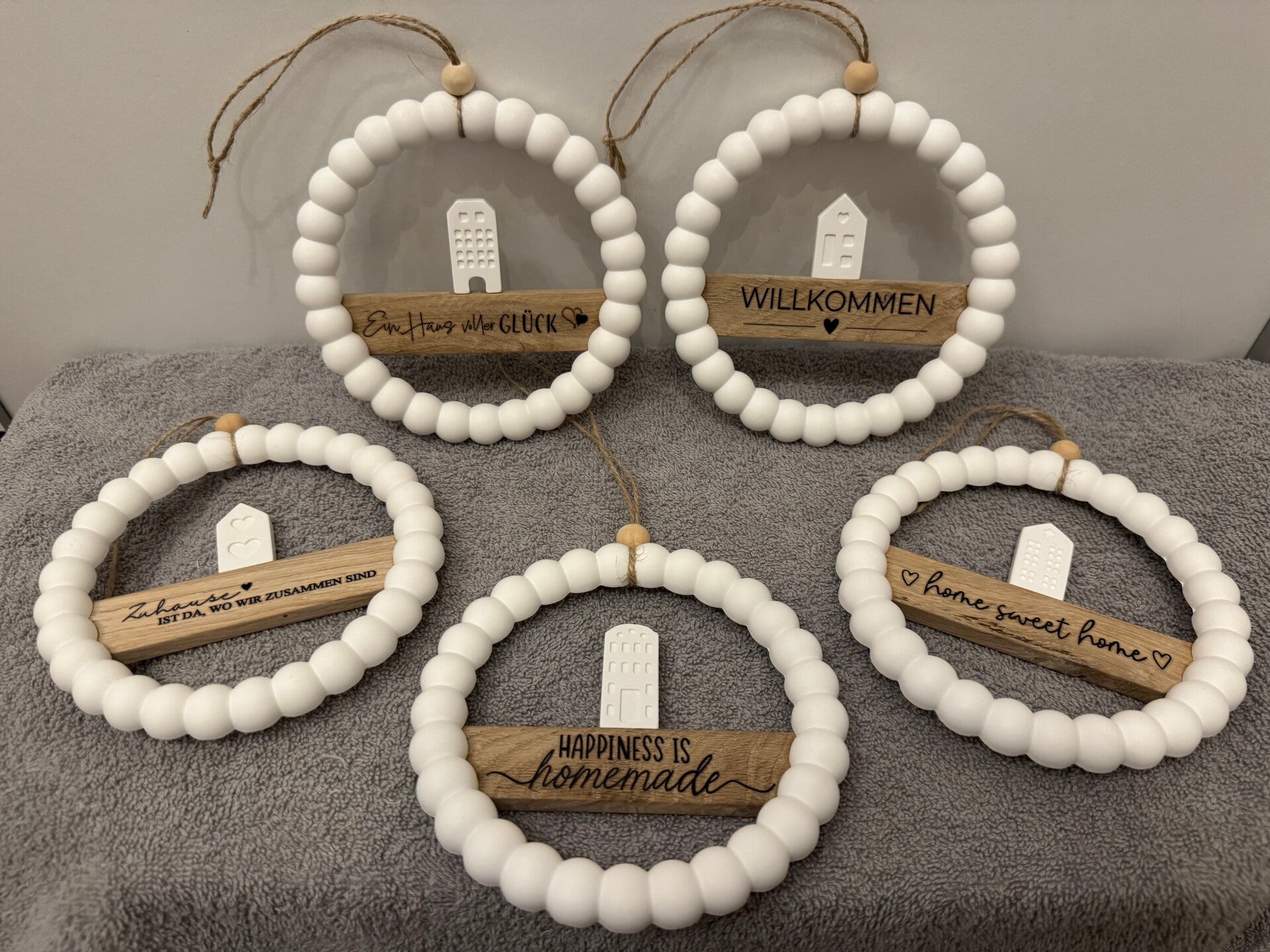 Aus Gips gefertigt und mit Holzleiste und Rub On Sticker gestaltet.